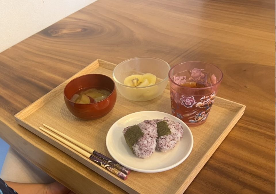 おかずは夕飯の残りが中心で、朝は卵焼きや簡単な副菜をプラスするだけにしています。
