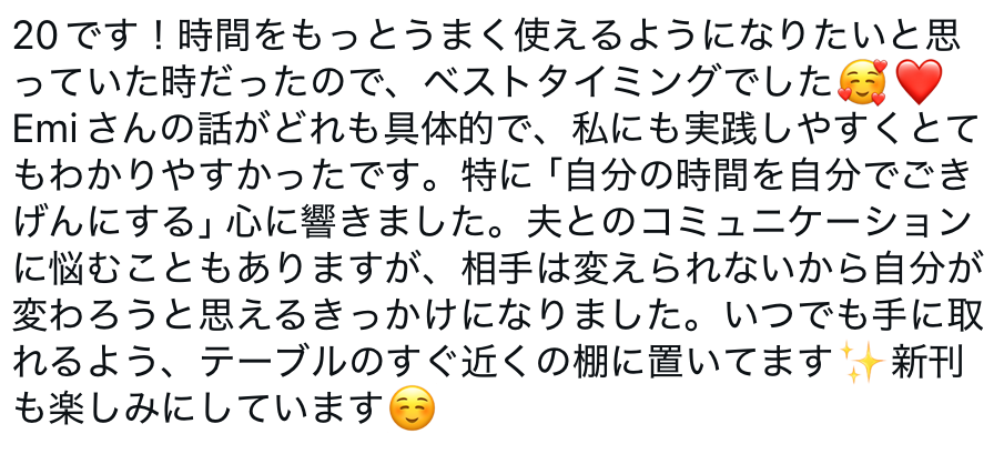 「時間に追われず、ごきげんに過ごす」Emiの時間術がぎゅっと詰まった1冊。おかげさまで6万部を突破!