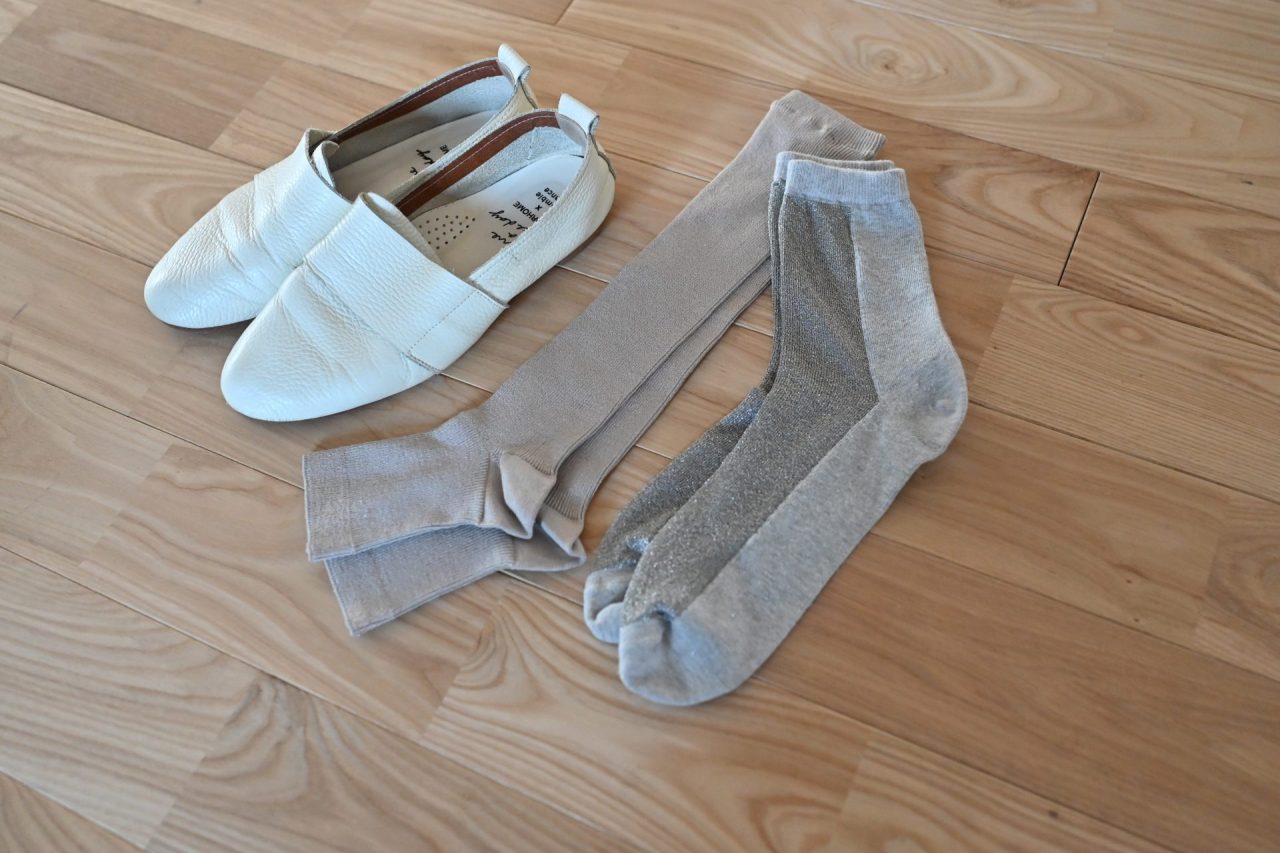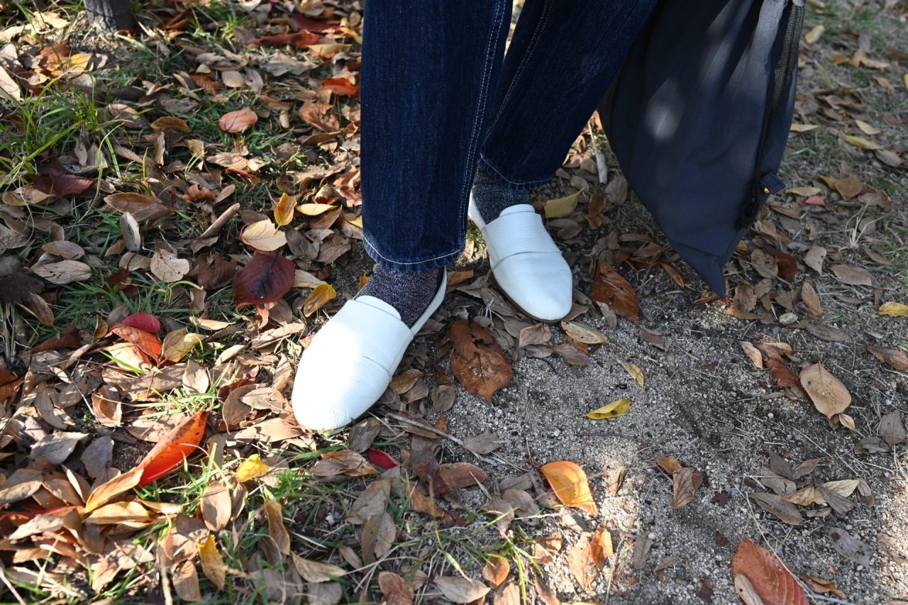 冬は「シルク素材のレッグウォーマー」と靴下を重ねばきするのですが、そんな足元をしっかり受け止めてくれるゆったりとした履き心地。