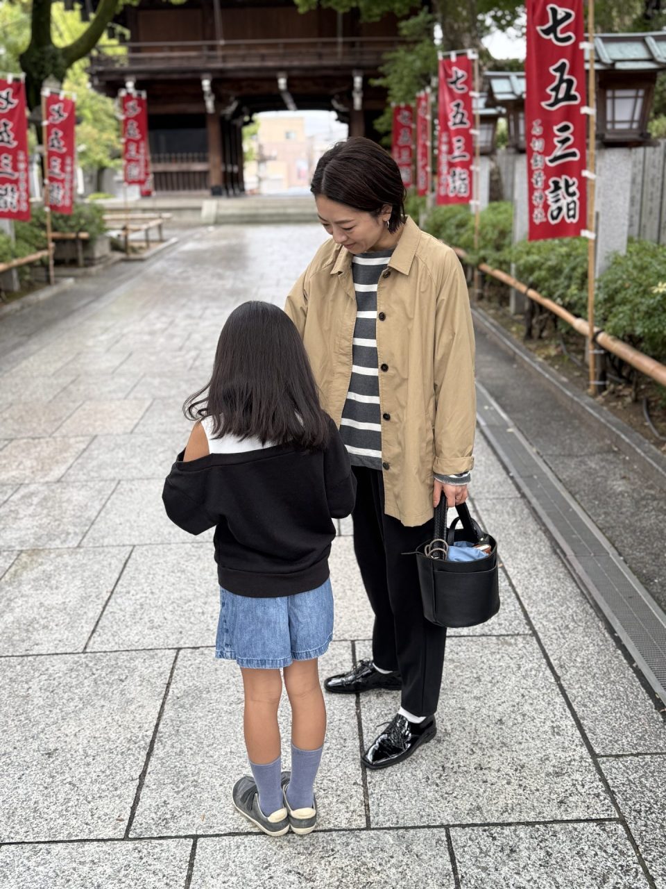 雨がぱらついた休日に神社へお出かけ。少々濡れてもエナメルなのでサッと拭き取れば大丈夫なところも好きなポイントです。