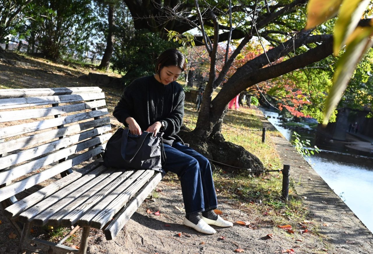 冬は「シルク素材のレッグウォーマー」と靴下を重ねばきするのですが、そんな足元をしっかり受け止めてくれるゆったりとした履き心地。