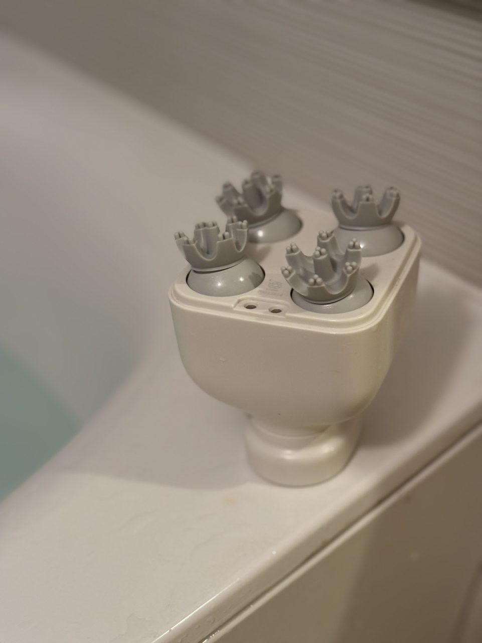 ちなみに、湯船に入りながらは“充電式頭皮ケアブラシ” (無印良品)で頭皮マッサージ。お手入れも簡単なところが気に入っています。」