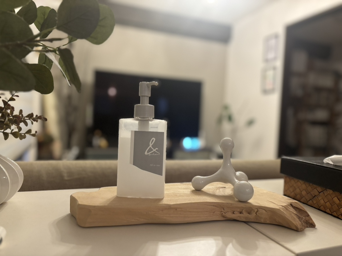 寝る前に、リビングに置いている【オールインワンジェル】を塗ってさらにしっとり!