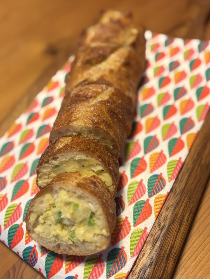 2)ポテトサラダを詰めて、食べやすい大きさにカット