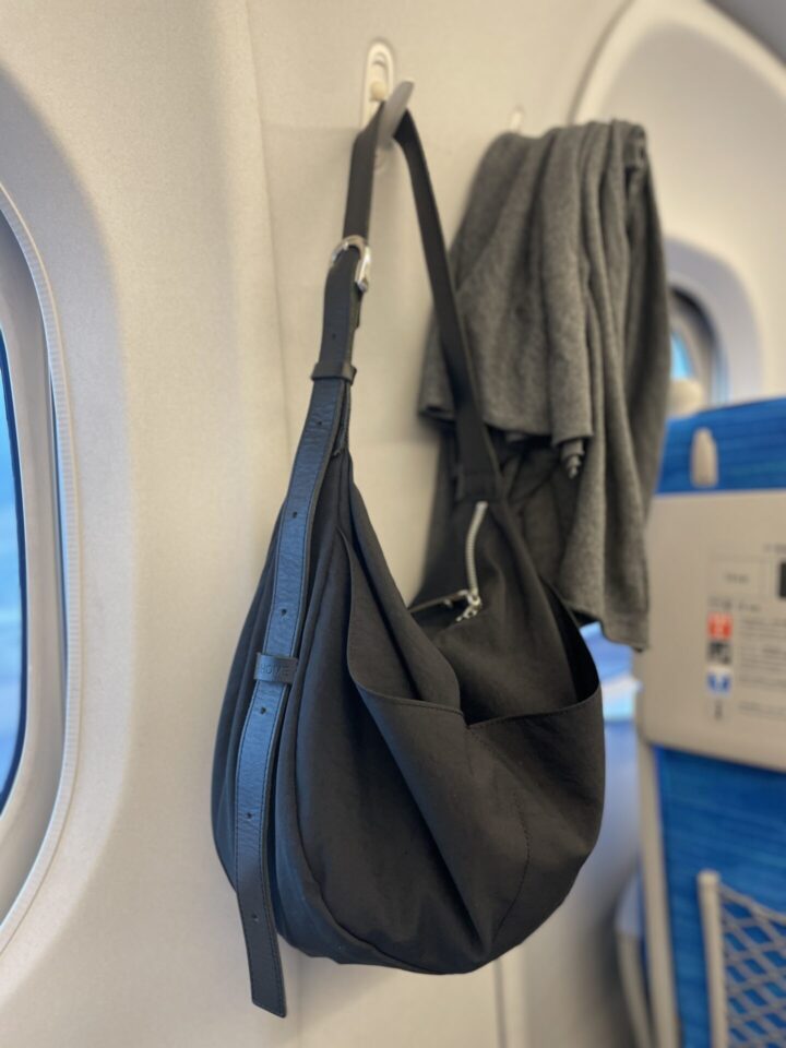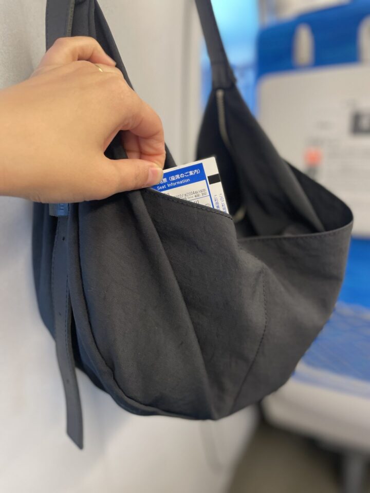移動中は、意外と物を「ちょこちょこ出す」ことが多いので、新幹線のチケットやスマホ、ハンカチなど、すぐ取り出したいものは外側ポケットへ。
