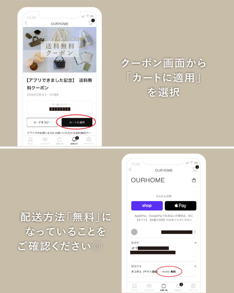 OURHOME「公式アプリ」できました!【送料無料クーポン】1/26(月)まで
