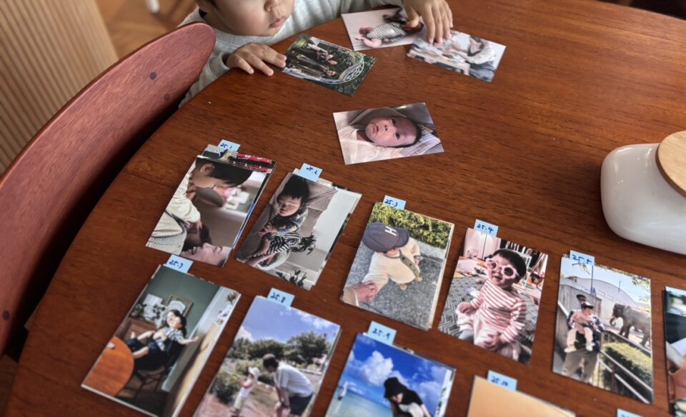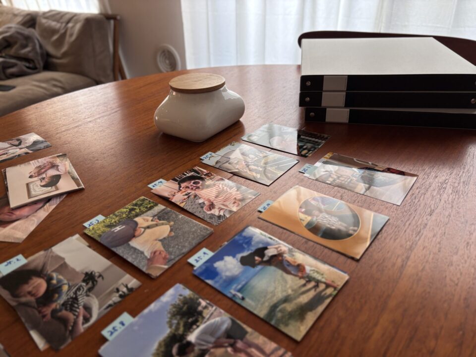 「今回、“日付”をプリントせずに注文したんですが、スマホだったらいつの写真かすぐわかるけど、日付の入ってないプリント写真を仕分けするのは、めちゃくちゃ大変でした〜〜〜!」と大後悔…。