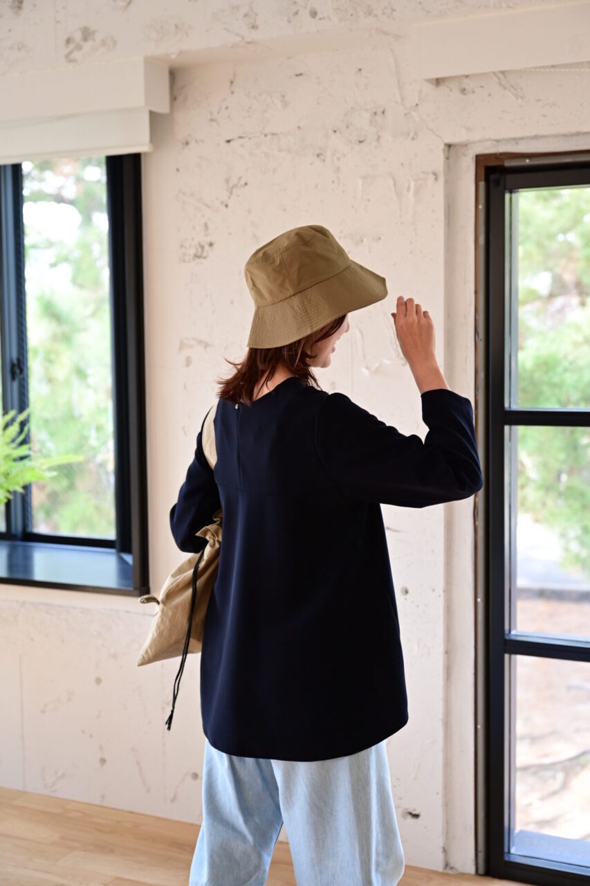 ほぼ一年中愛用している後ろギャザーブラウスとパンツの組み合わせは間違いない!と思って選びました。」