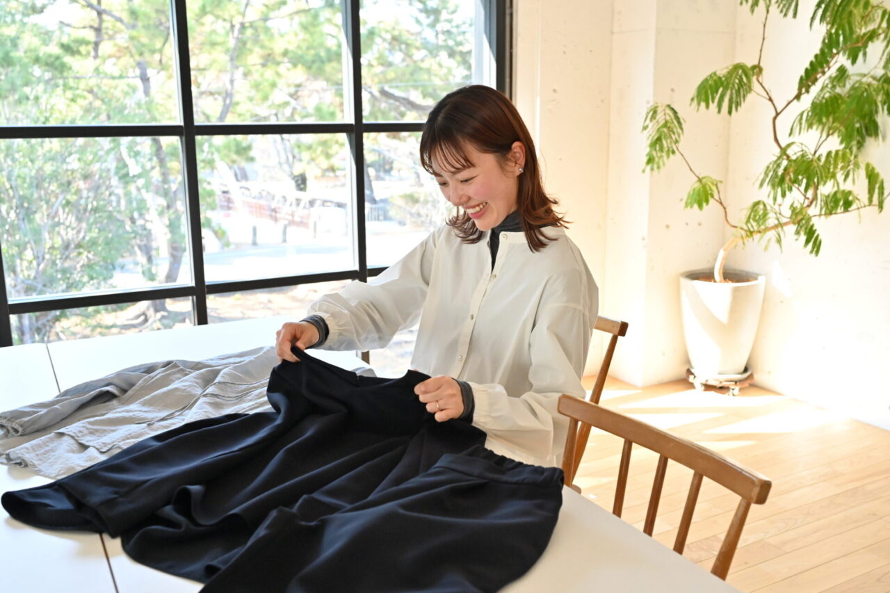 腰回りがゆったりしたデザインなので、体型が出なくて嬉しいと話してくれました。
