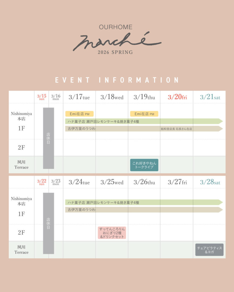 \本店リニューアルオープン/3/17-28『OURHOMEマルシェ 2026春』開催