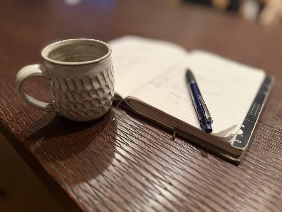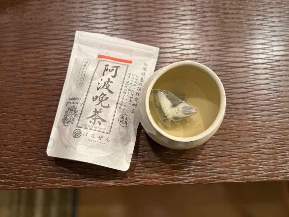友人にもらって飲み始めたという、カフェインが少ない阿波番茶(あわばんちゃ)。ノートを書くときのお供に。