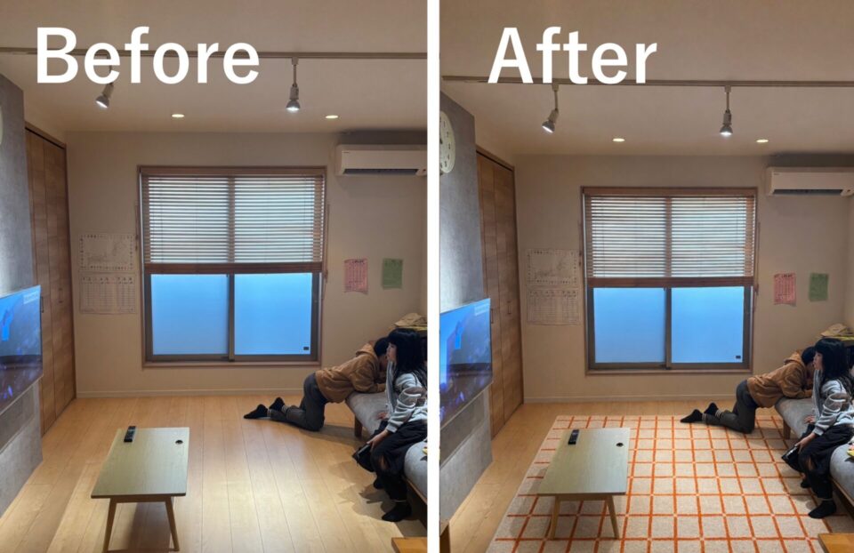 を送ると、まるでラグを実際に敷いているような部屋の写真(After)が生成されたそう!!