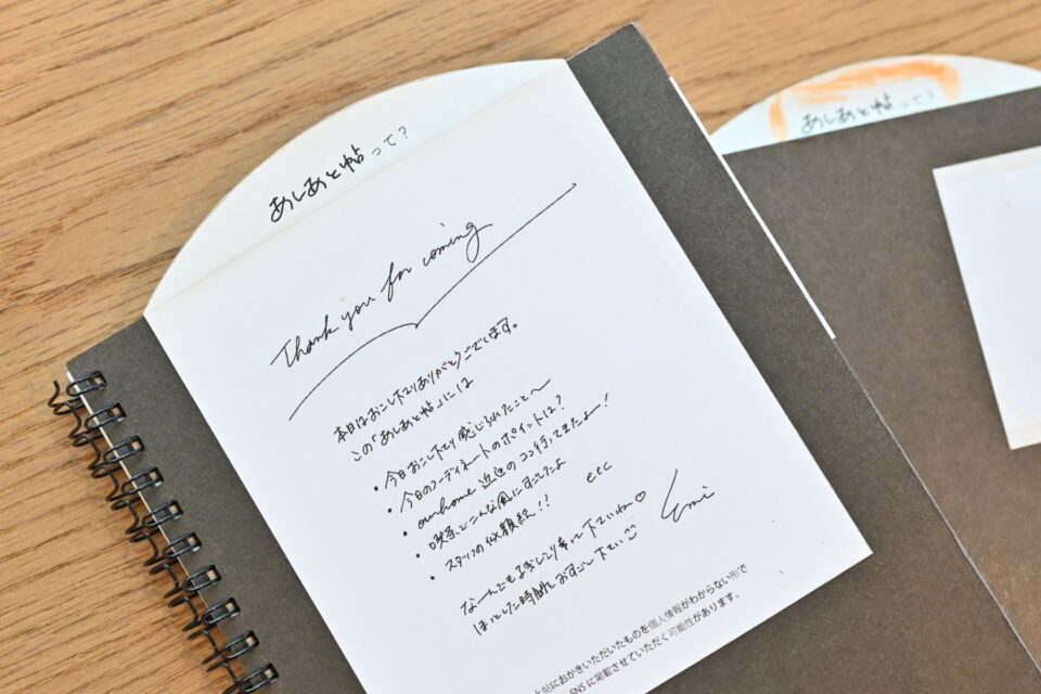 実店舗にお越しの際は、思いを綴ったり、誰かのあしあとをちょっと覗いてみたり。