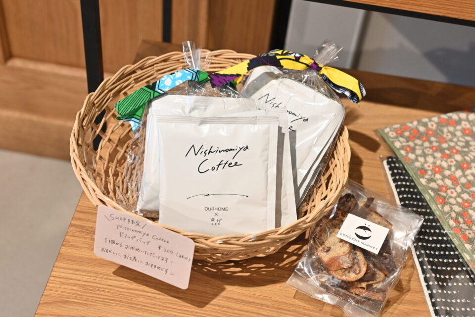 SHOP限定で、ドリップコーヒーのパッケージをパーニャの端切れでおめかし◎