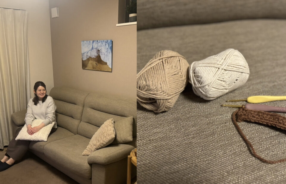 自分の夜ごはんを済ませたら、旦那さんが帰ってくるまでゆったり一人時間。最近ハマっているのは、あみものだそう◎