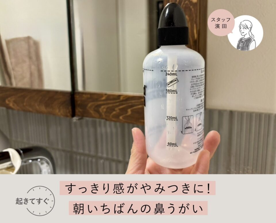 起きた瞬間からの鼻水・鼻詰まりも、鼻うがいでスッキリ〜!痛みもなく、鼻の奥まできれいに。