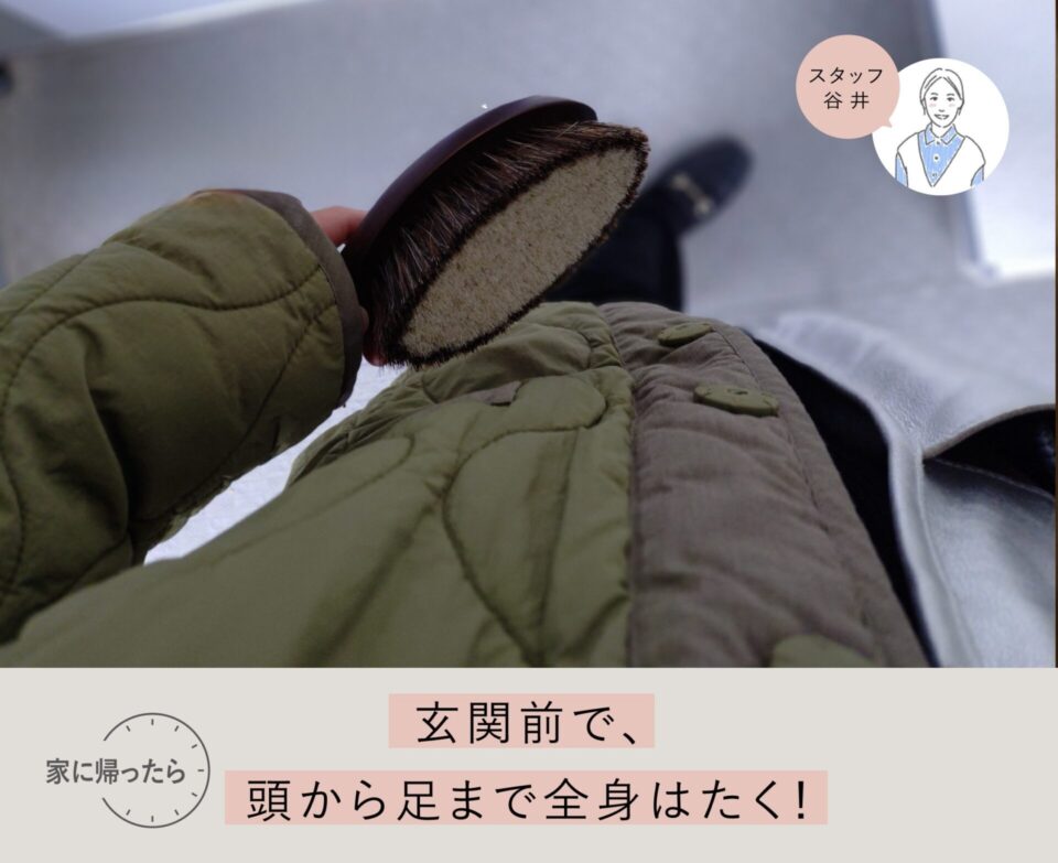 玄関に置いている洋服ブラシで、花粉を払ってから「ただいま〜!」