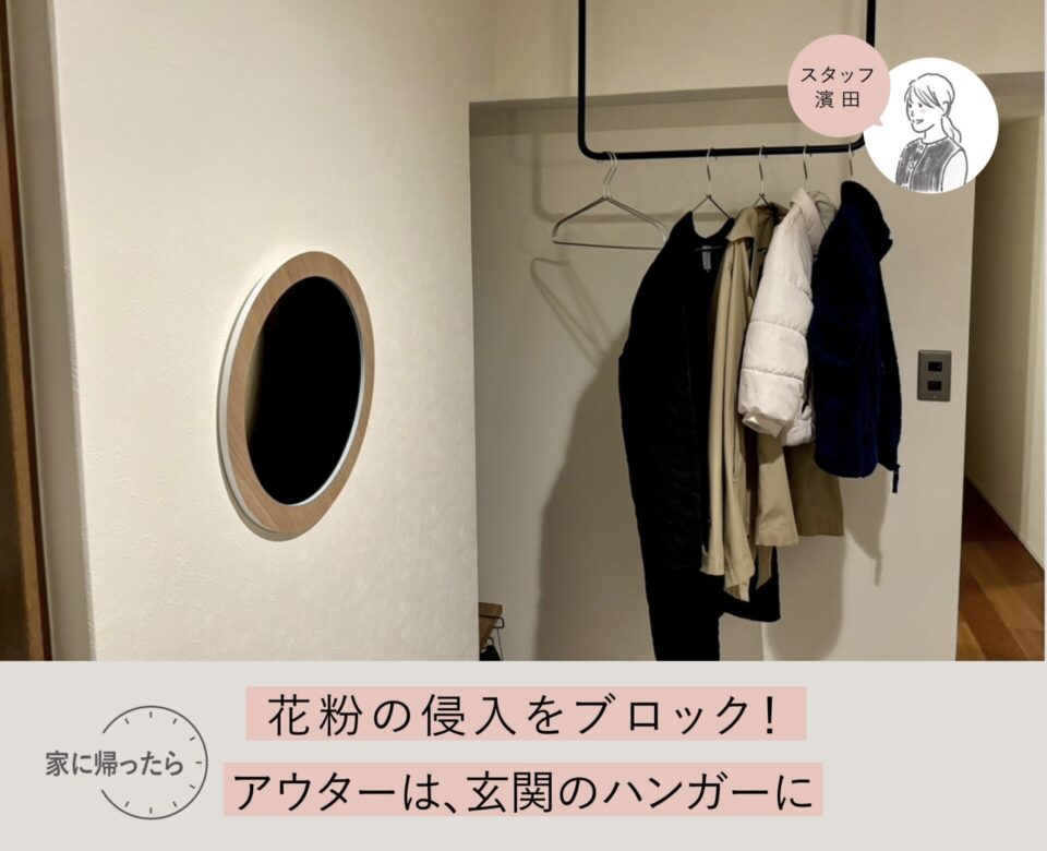花粉を室内に持ち込まないよう、アウター置き場を玄関に。