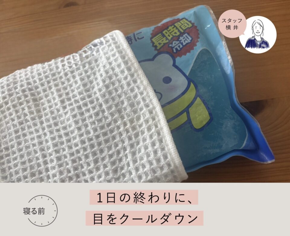 ・タオルで包んだ保冷剤を1〜2分まぶたにあてる