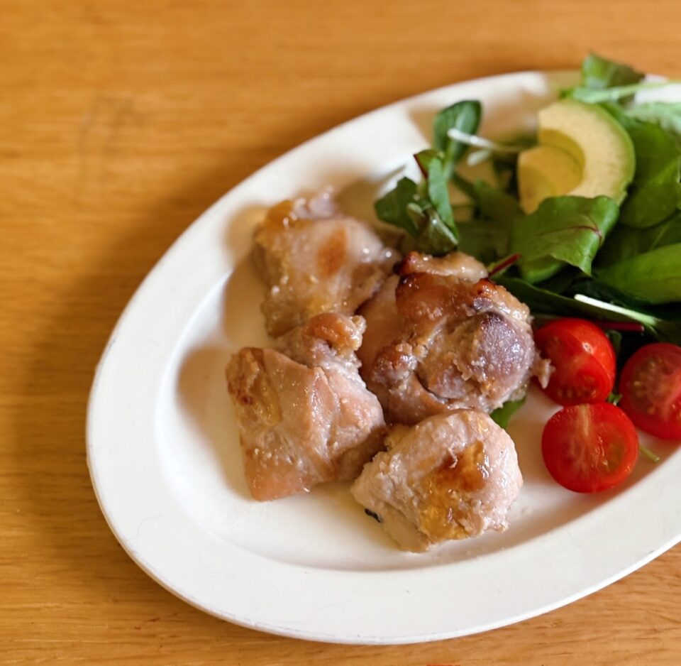 1)ビニール袋に鶏もも、醤油麹(醤油とお酒でも)、みりんを入れてもみこむ