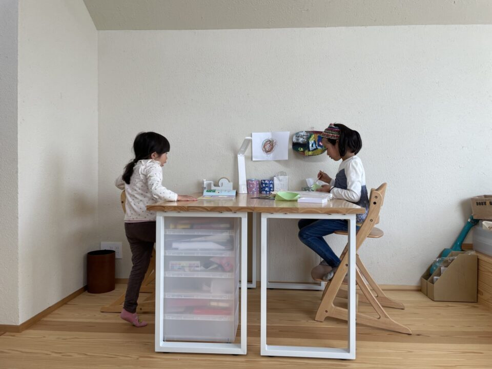 子どもたちのモノが少しずつ増えてきたタイミングで、机を子ども部屋にお引っ越し。