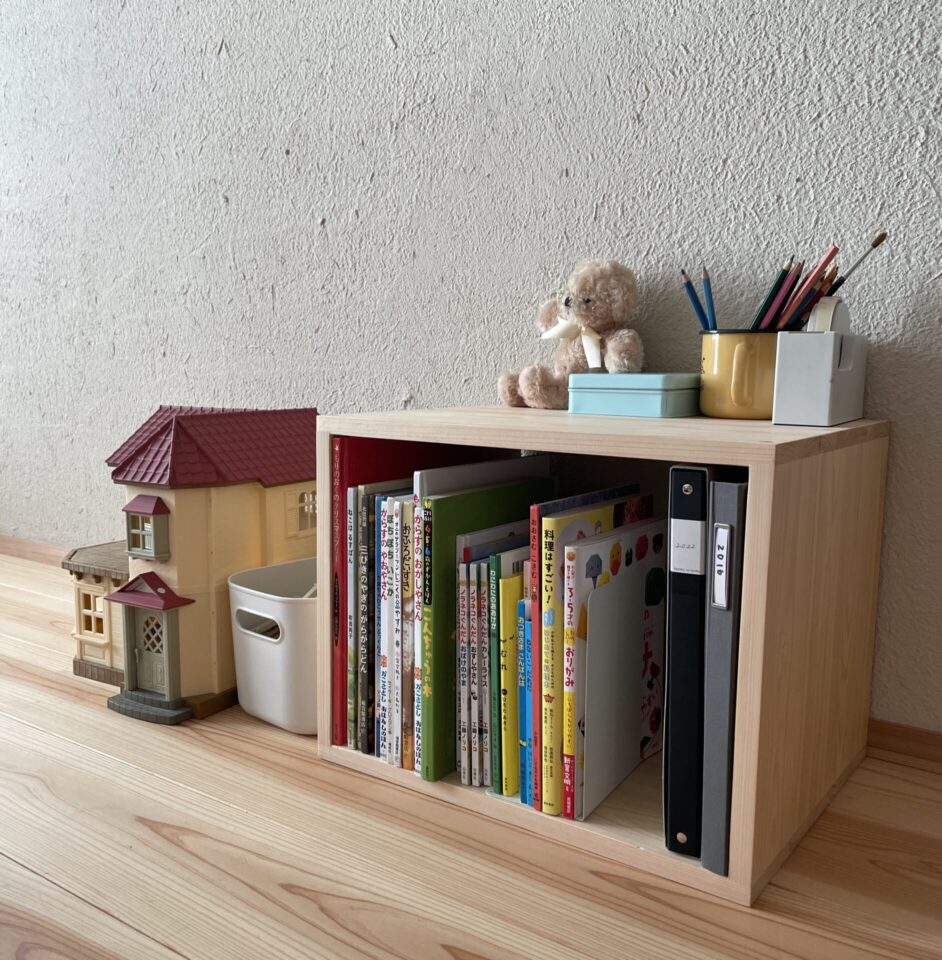この時、絵本棚として使っていたオープンボックスも、学用品入れに使い方をチェンジ!